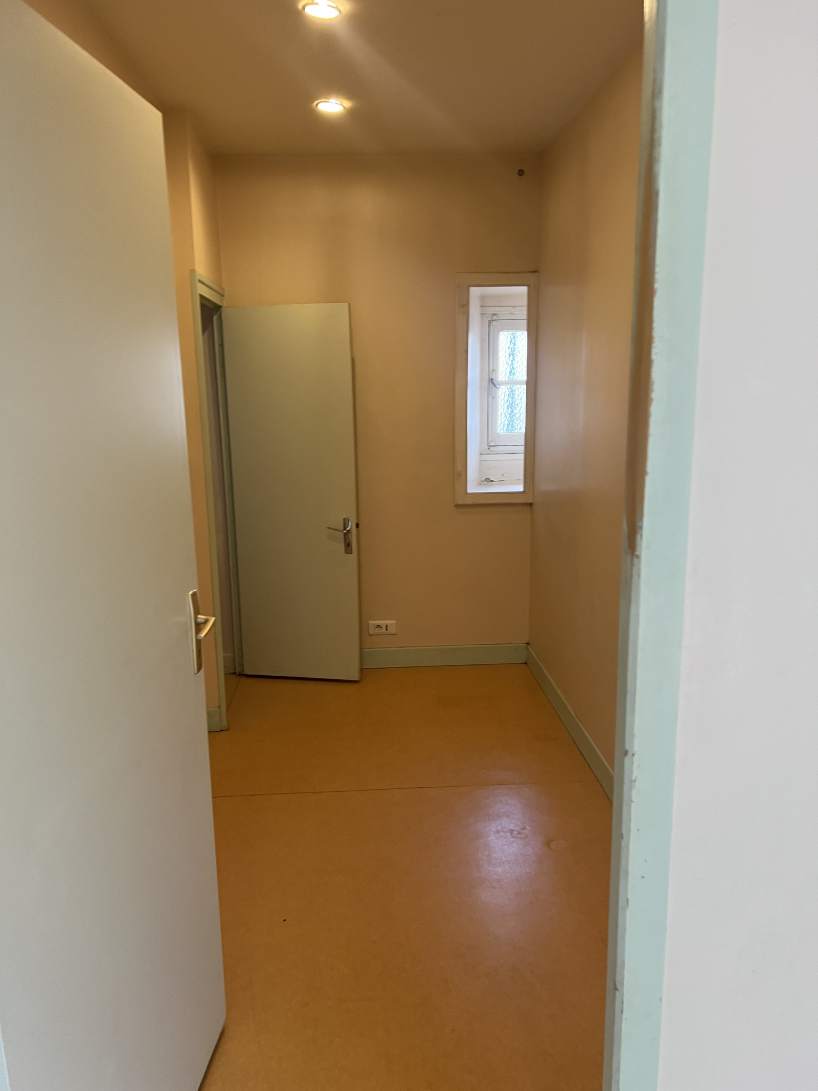 Ce local de 35m2 est disposé en 3 parties avec une pièce principale équipée d'une kitchnette, un bureau à gauche puis à droite un bureau divisé en 2 petites salles (salle d'attente et sanitaires).