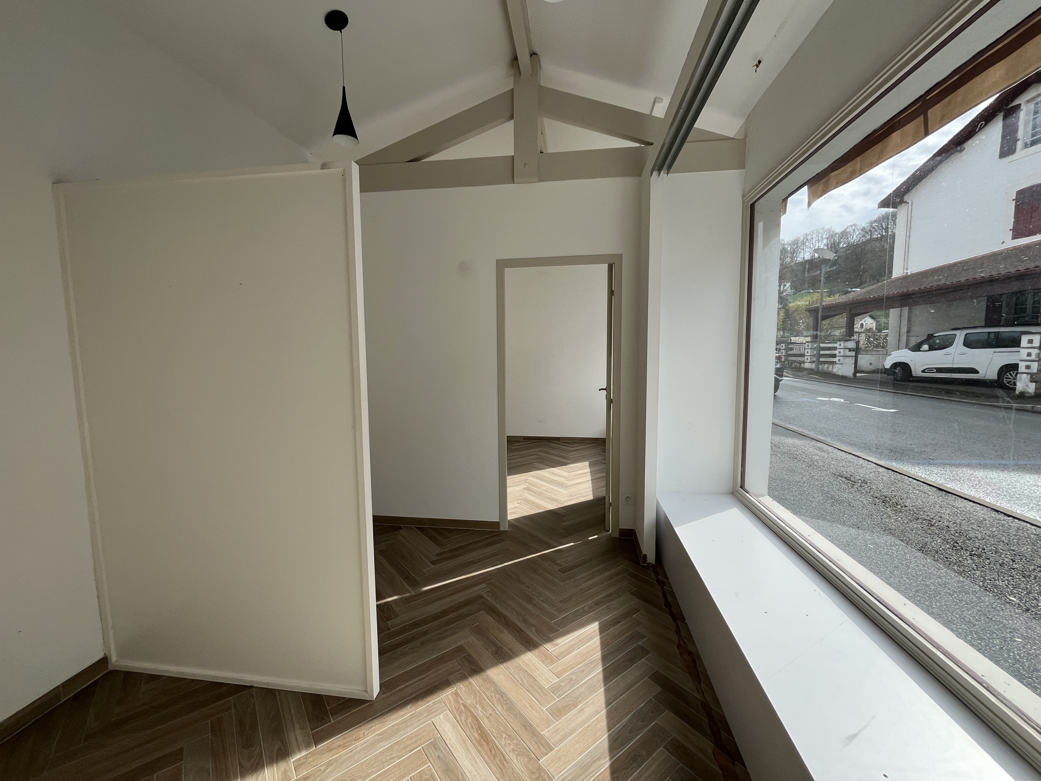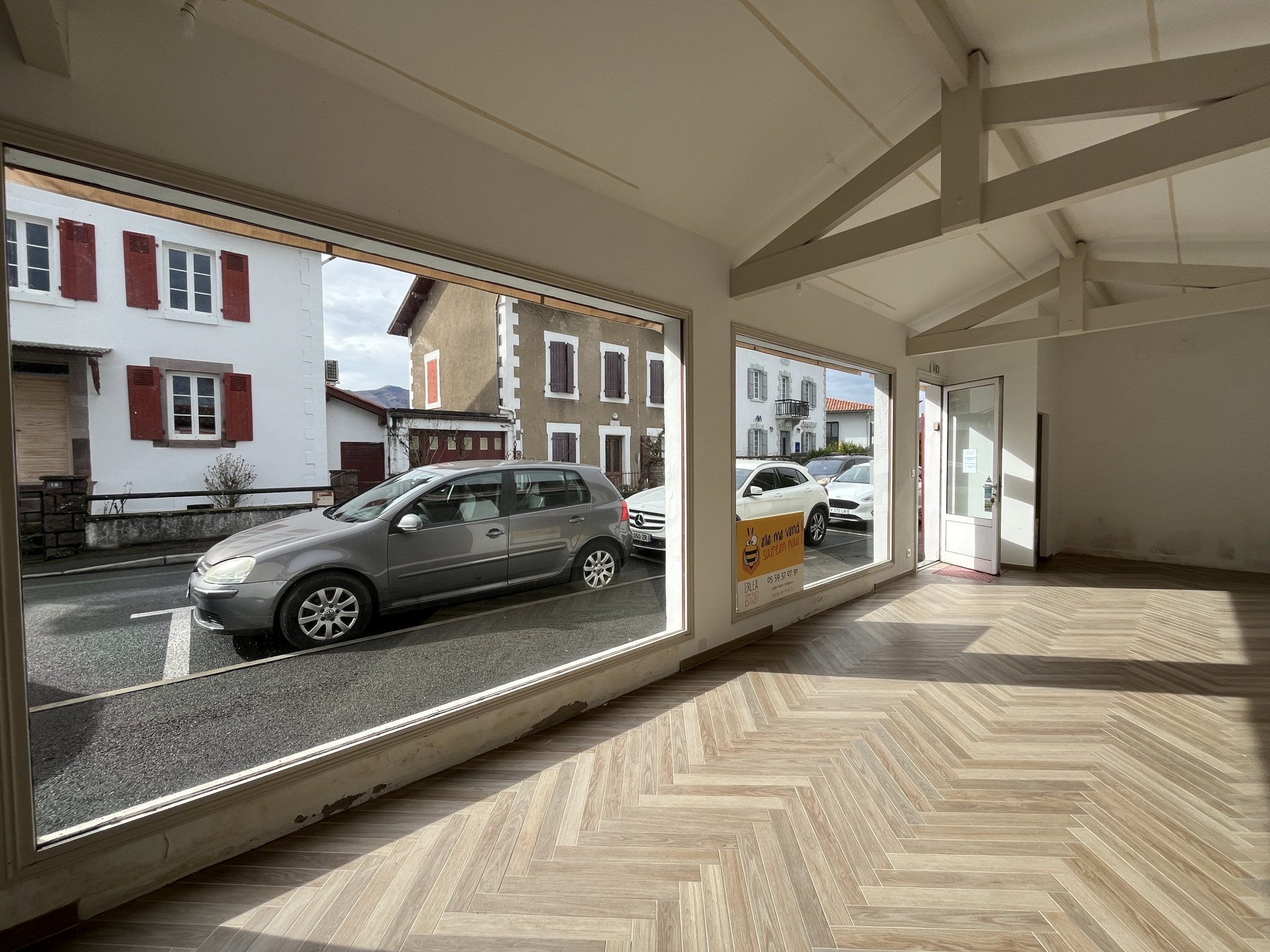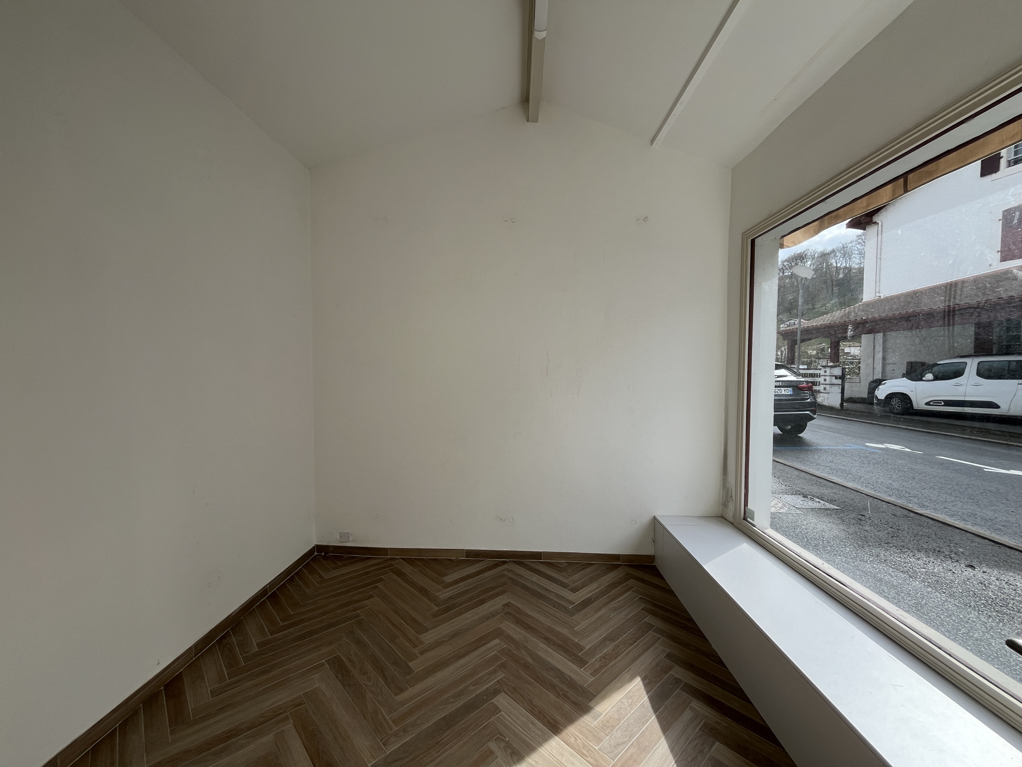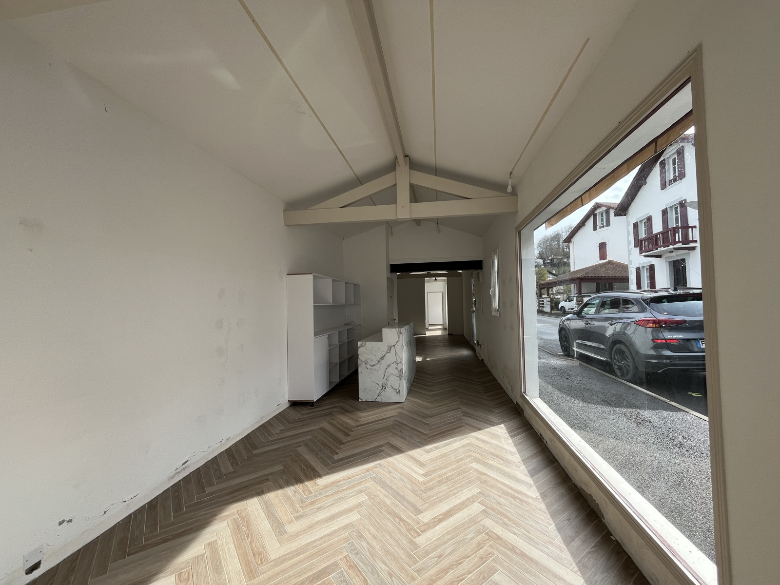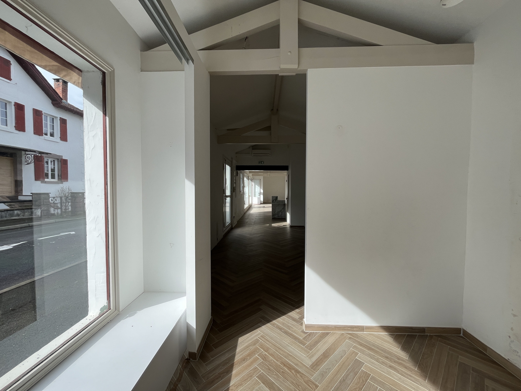 Proche du centre-ville et de la gare de St Jean Pied de Port, spacieux local commercial avec 4 grandes vitrines et 1 fenêtre, et 2 entrées distinctes permettant ainsi de cloisonner le local en 2 parties, selon vos besoins. Belle luminosité grâce aux vitrines. Chauffage par climatisation réversible (1 poste clim). Sanitaires (wc et lave-mains). Bonne visibilité avec parking gratuit aisé. Bail précaire ou commercial. Idéal pour une activité de bureau, commerce, petit atelier...
