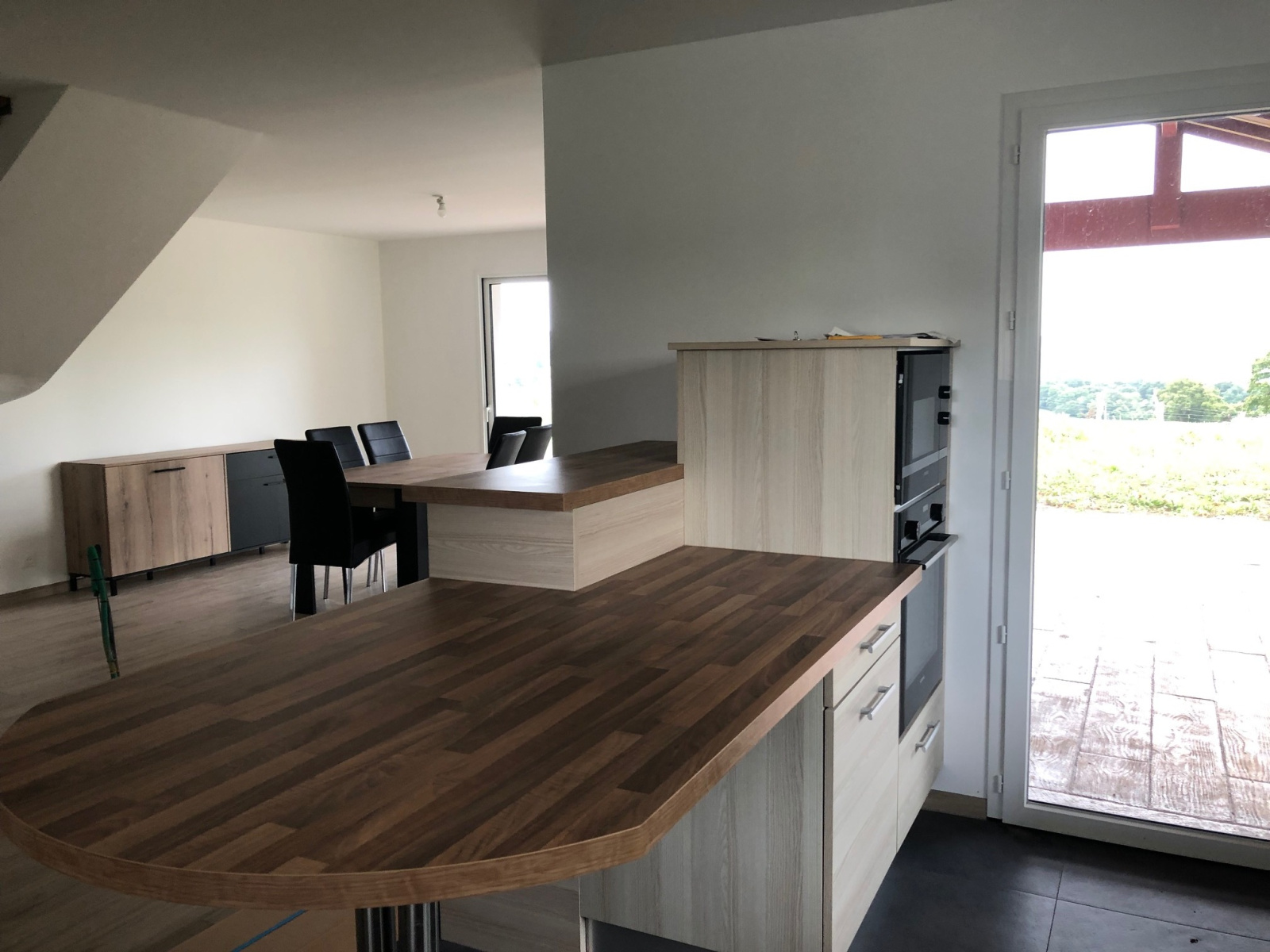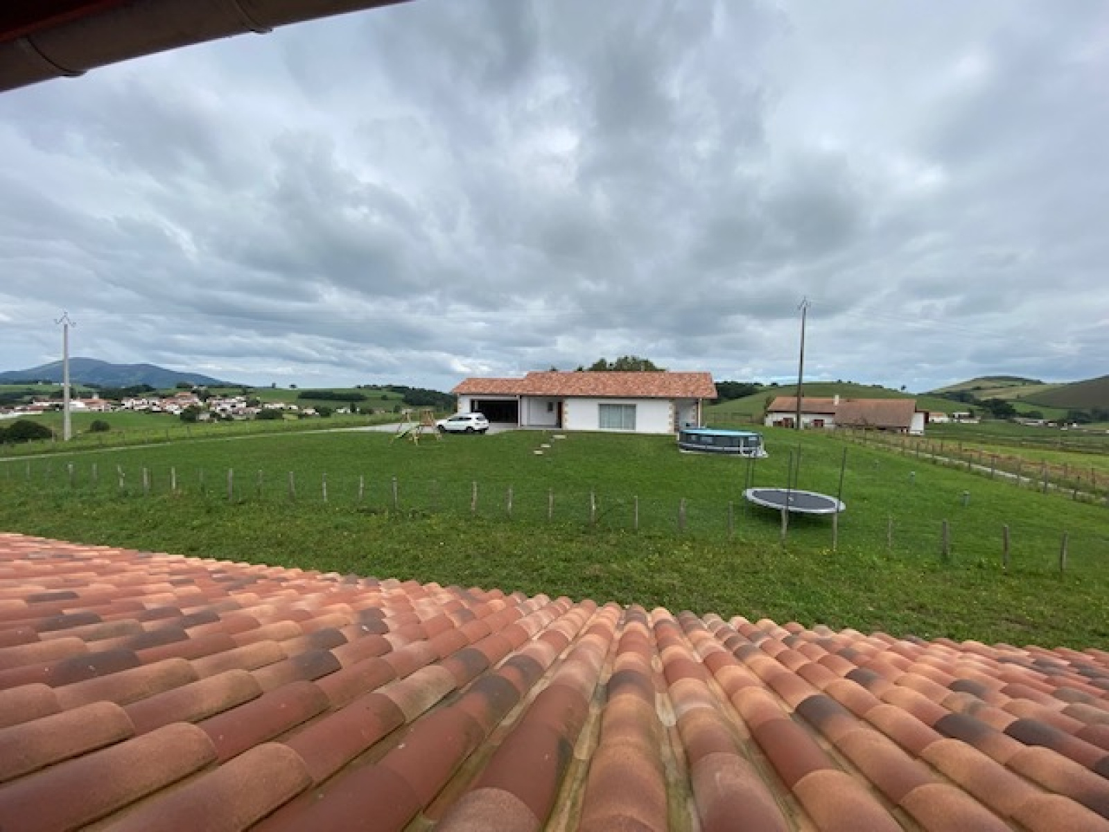 A l'extérieur, agréable terrasse bien exposée, un garage ouvert de 49 m² et un terrain de 3000 m². Pompe à chaleur. Bel environnement campagne au calme, vue dominante.