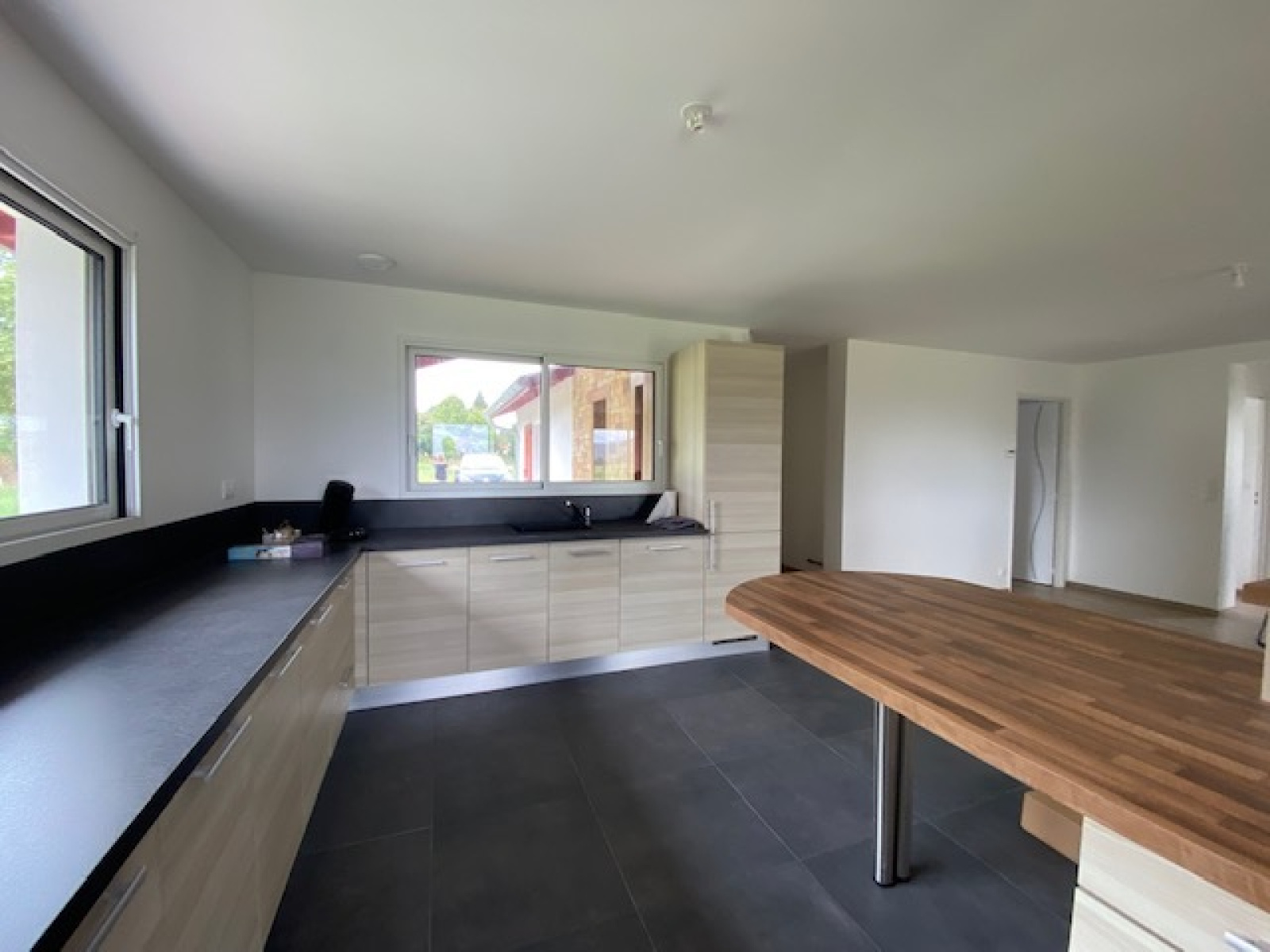 Maison entièrement meublée, composée d'un vaste séjour donnant sur une cuisine équipée et aménagée (plaque, hotte, four, micro-ondes, lave-vaisselle, frigo/congel, table, meubles), 2 chambres, wc indépendants, 1 salle de bains/wc, buanderie au rez-de-chaussée. Au 1er étage: hall desservant 1 chambre, 1 bureau et 1 salle de douche/wc.