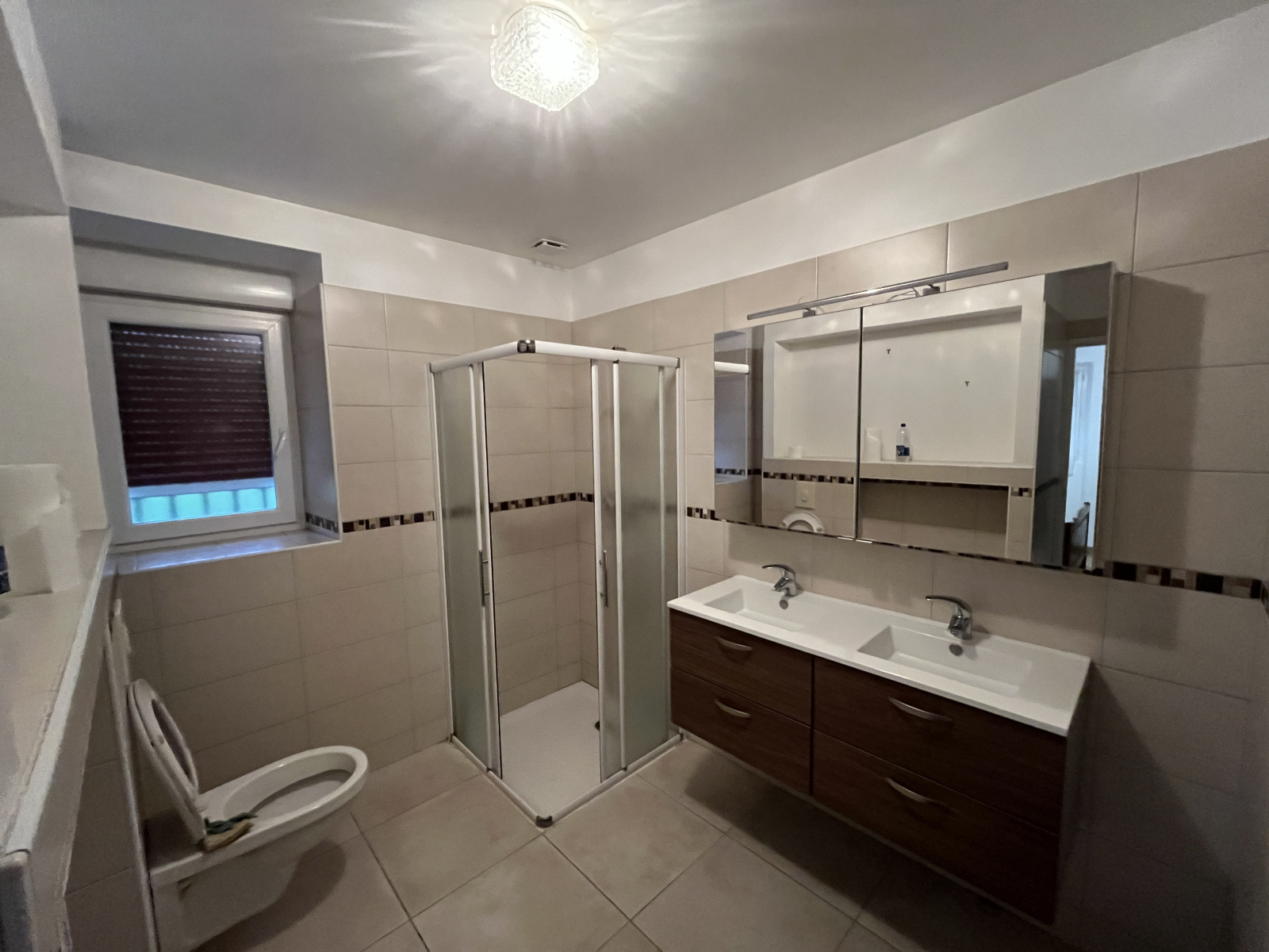 Le rez-de-chaussée est composé d’une cuisine aménagée et équipée, d’une pièce de vie lumineuse, d’une chambre avec salle de bain attenante, ainsi que d’une buanderie.