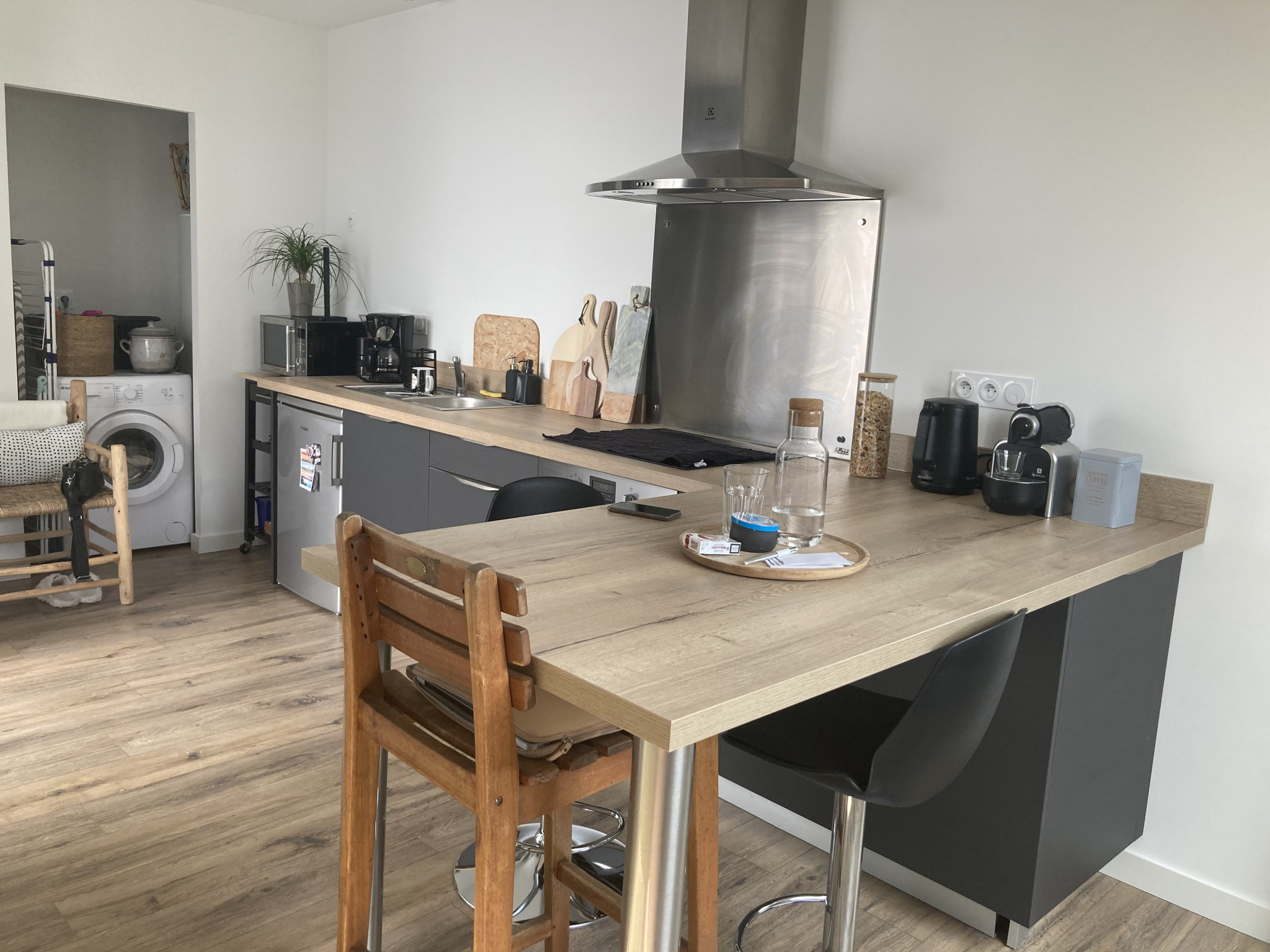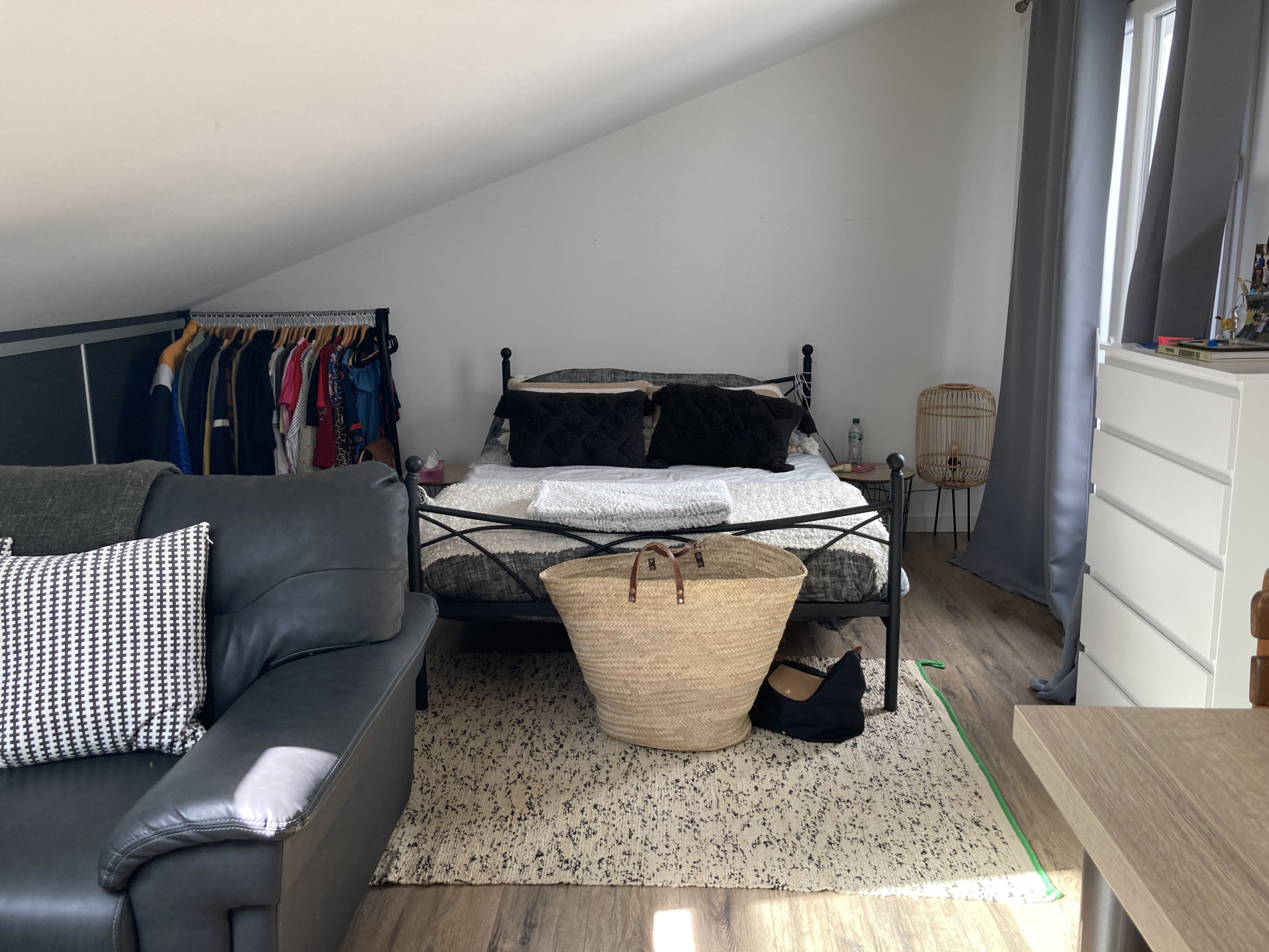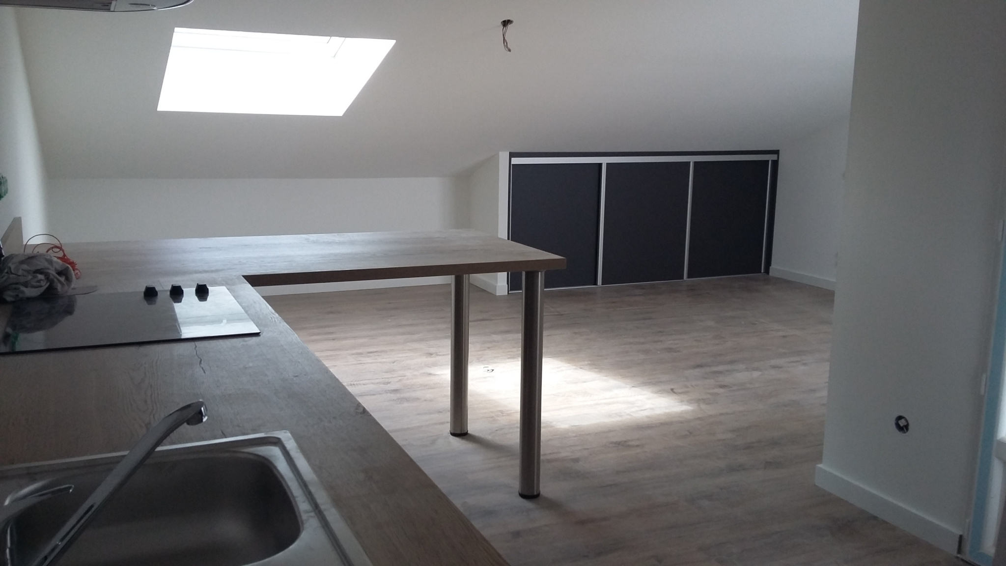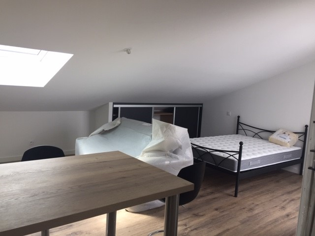 Il est composé d'une cuisine aménagée ouverte et partiellement équipée (four, plaque de cuisson, hotte, frigo) sur une agréable pièce à vivre, salle d'eau, WC, débarras. Lit 140 + canapé clic-clac. Cave indépendante et 1 place de parking. Disponible début mai 2026.