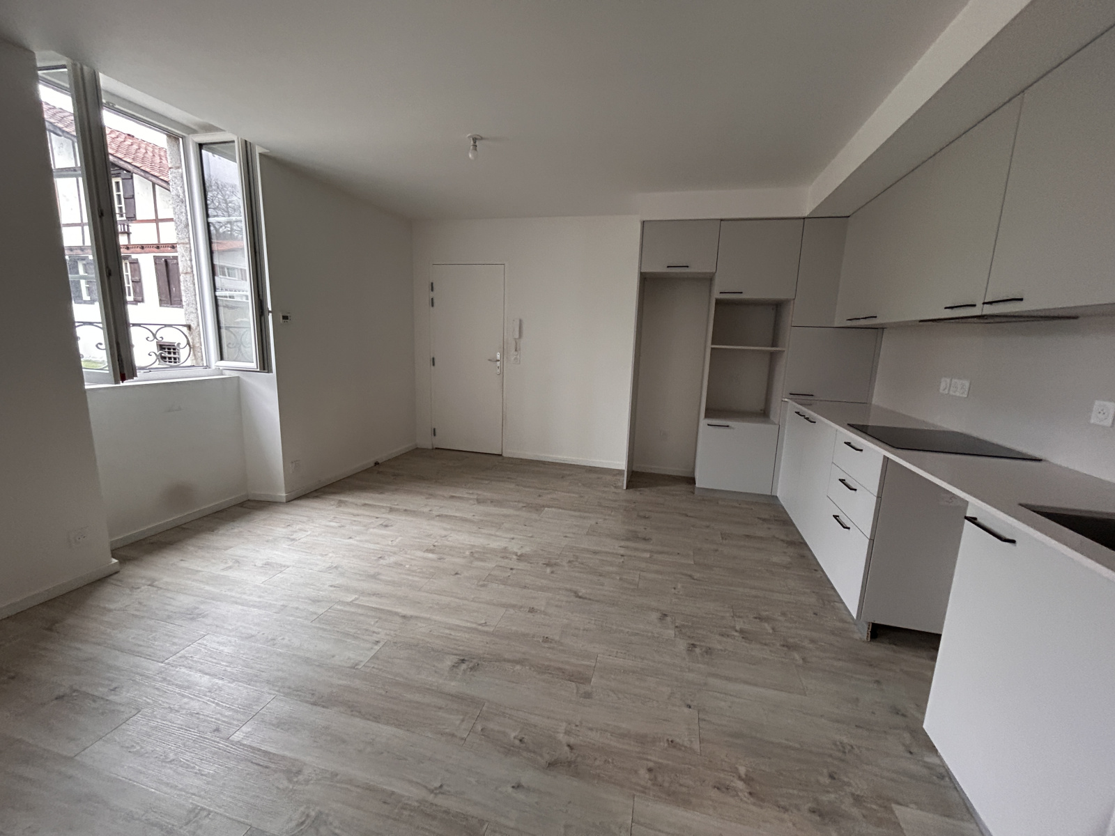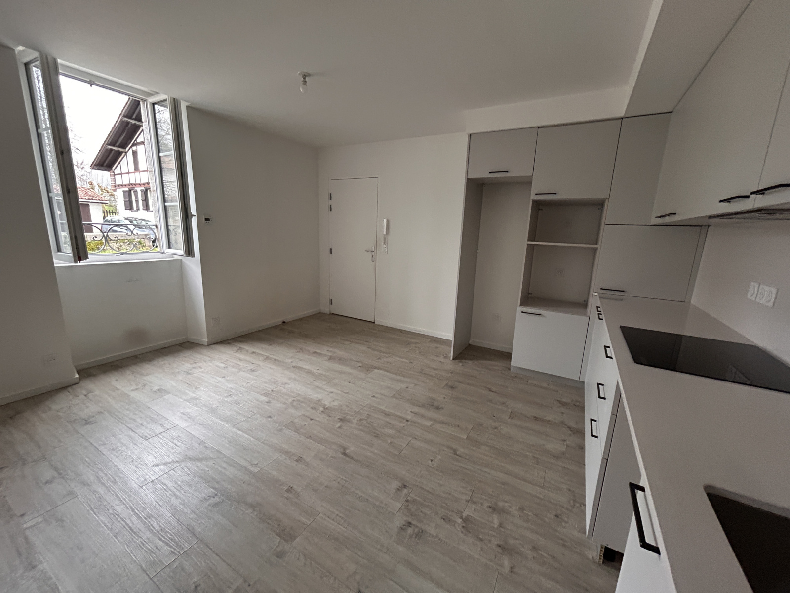 Dans un petit collectif composé de 6 logements, bel appartement T2 de 42 m² de plain-pied avec entrée sur pièce principale avec cuisine ouverte équipée et aménagée (plaque de cuisson induction, hotte, meubles hauts et bas), 1 chambre avec placard, salle de douche/wc. Cave en sous-sol. Chauffage électrique au sol, double vitrage. Parking aérien avec 2 emplacements extérieurs face à la maison.