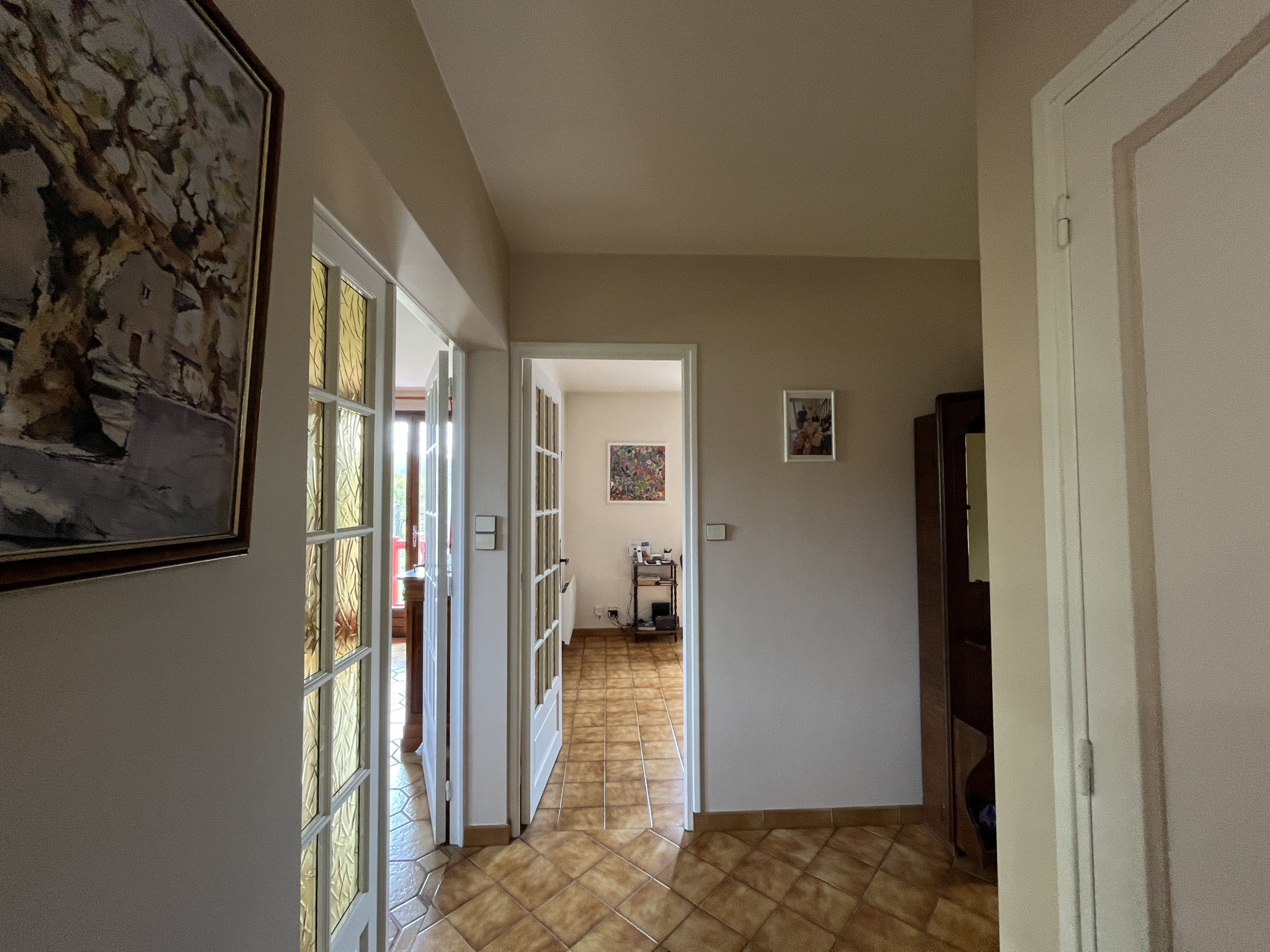Vous profiterez également d'un balcon avec superbe vue, d'une spaciseuse terrasse dallée avec store et d'un espace de stationnement. Un agréable jardin clos, arboré et fleuri agrémente le tout.Environnement calme, sans vis-à-vis.