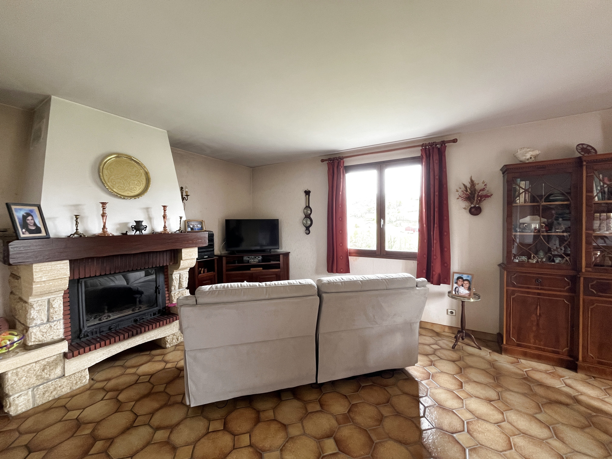 A 2 km du bourg, cette maison édifiée en 1988 sur un terrain d’environ 1391 m² se compose de :